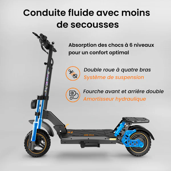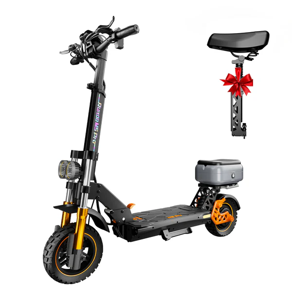 Der Ruitoo M5 Pro Elektroroller überzeugt durch ein ausgewogenes Fahrverhalten und hohen Fahrkomfort. Die ergonomische Konstruktion sorgt für eine angenehme Sitz- und Stehposition, während zuverlässige Bremsen die Sicherheit im Straßenverkehr erhöhen.
