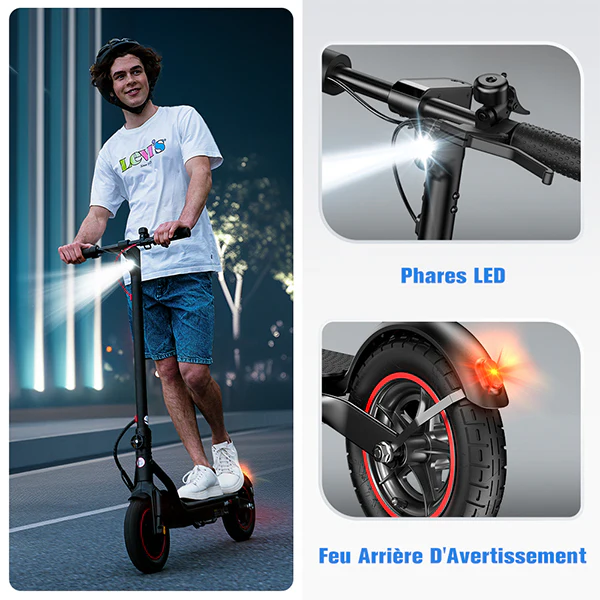 Gefertigt aus langlebigen Materialien, überzeugt der Elektroroller durch seine Widerstandsfähigkeit. Er ist für den regelmäßigen Gebrauch konzipiert und hält den Belastungen des Stadtverkehrs zuverlässig stand.